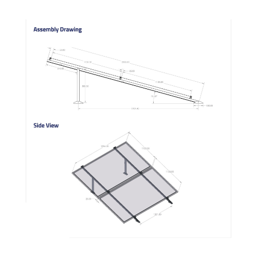 BHS Aluminium Smith L2 Solar Structure with clamps For two Solar Panel